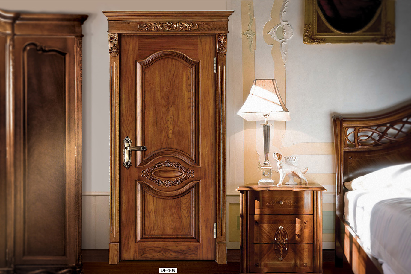 廠家直銷愉X-4062平開仿古雕花實木烤漆門